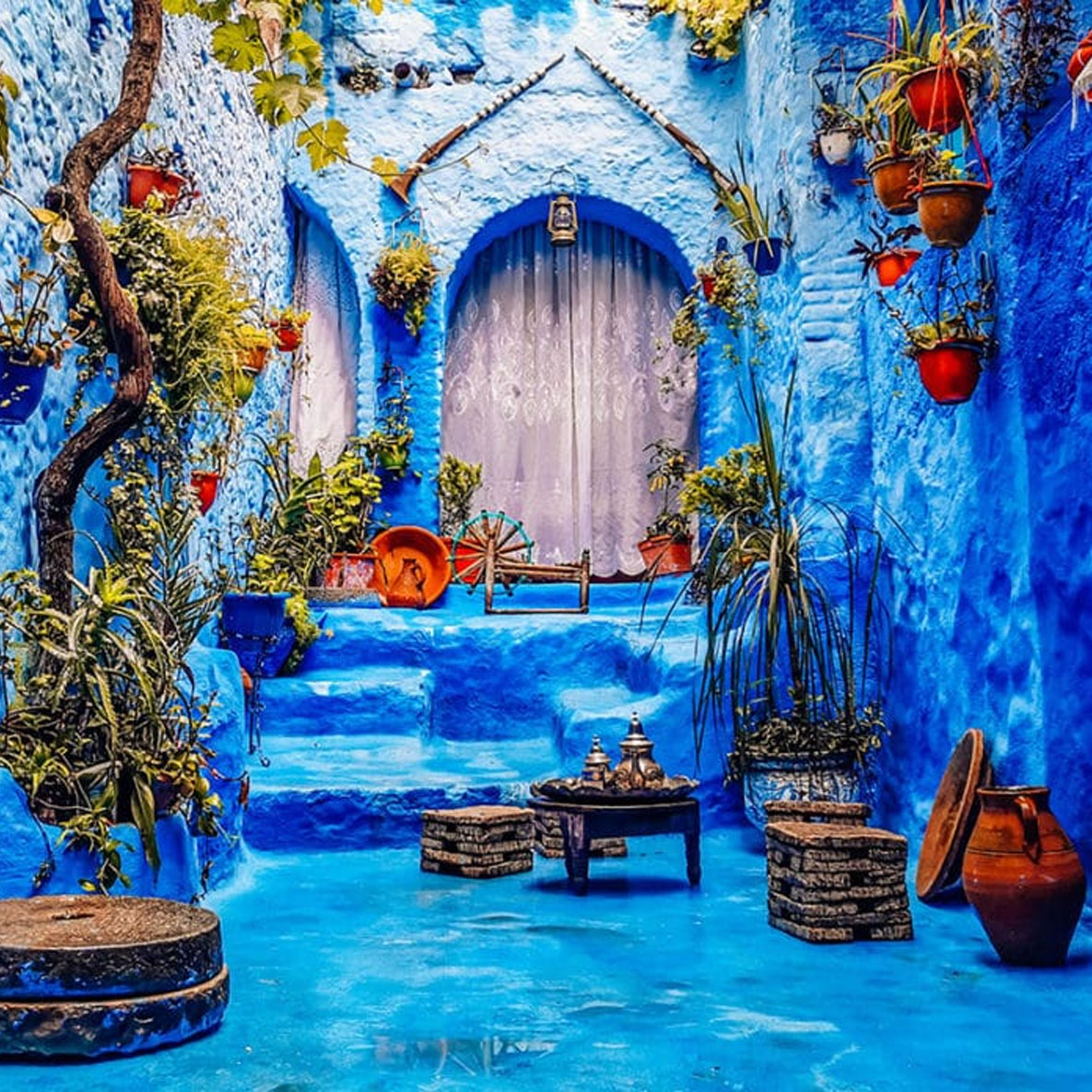 Enjoy the morning discovering the beauty of Chefchaouen’s medina; its calming shades of blue, cozy cafés, and mountain views. After some free time, travel toward Casablanca to end your journey.